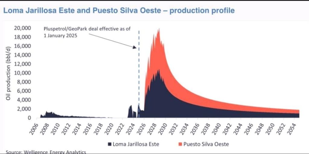 La proyección combina el potencial de Loma Jarillosa Este, que aportará los mayores volúmenes iniciales, y Puesto Silva Oeste, que extenderá la vida útil del conjunto. Esta estrategia, apoyada en la ventana de black oil, ofrece a GeoPark una rápida monetización de su inversión y asegura un perfil productivo competitivo frente a otros desarrollos de la cuenca.